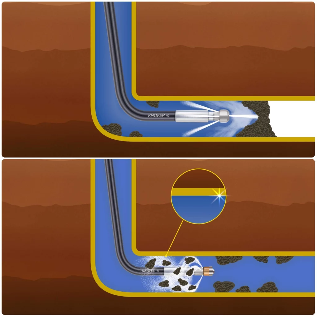 Débouchage haute pression : le curage hydrodynamique consiste a envoyer de l’eau à haute pression dans les canalisations pour éliminer les bouchons et les dépôts de manière efficace et écologique.